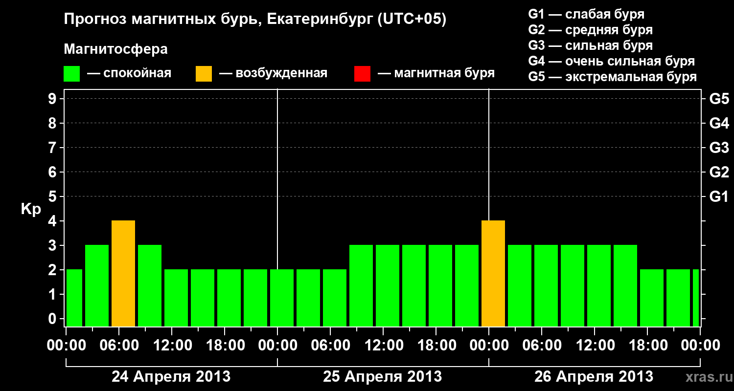 Прогноз магнитных бурь в Екатеринбурге на 24 апреля 2013 года