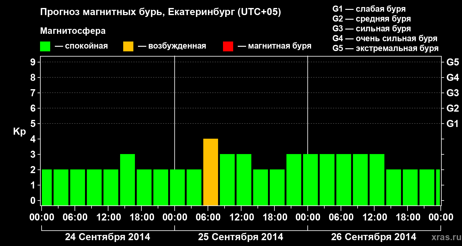 Прогноз магнитных бурь в Екатеринбурге на 24 сентября 2014 года
