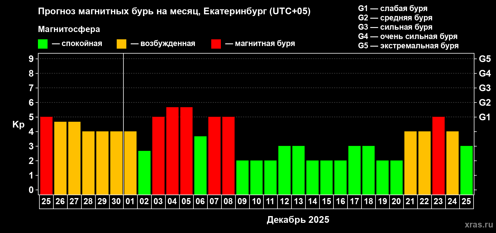 Прогноз магнитных бурь в Екатеринбурге — 25 ноября 2025 года