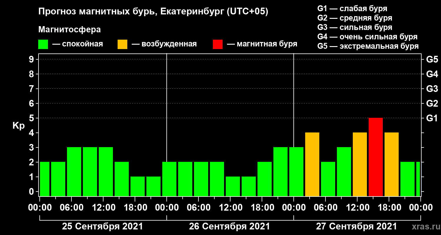Прогноз магнитных бурь в Екатеринбурге — 25 сентября 2021 года