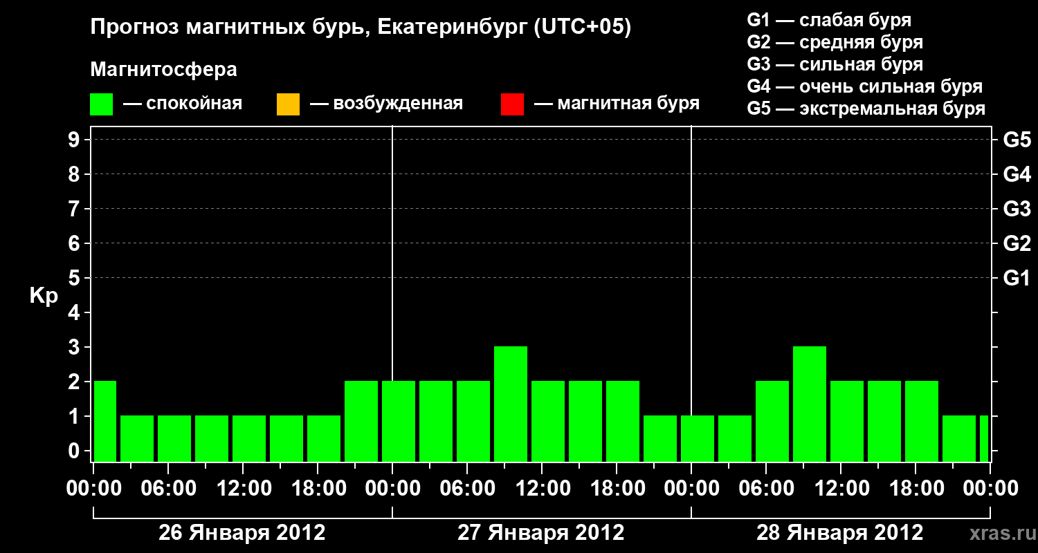 Прогноз магнитных бурь в Екатеринбурге на 26 января 2012 года