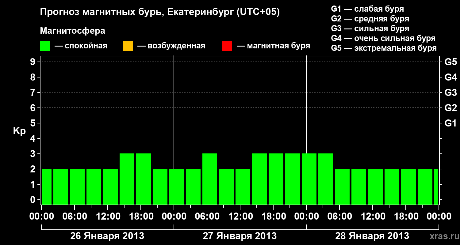 Прогноз магнитных бурь в Екатеринбурге на 26 января 2013 года