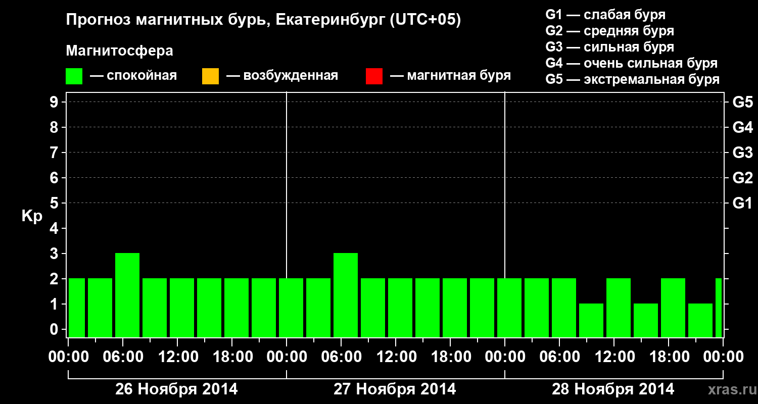 Прогноз магнитных бурь в Екатеринбурге — 26 ноября 2014 года