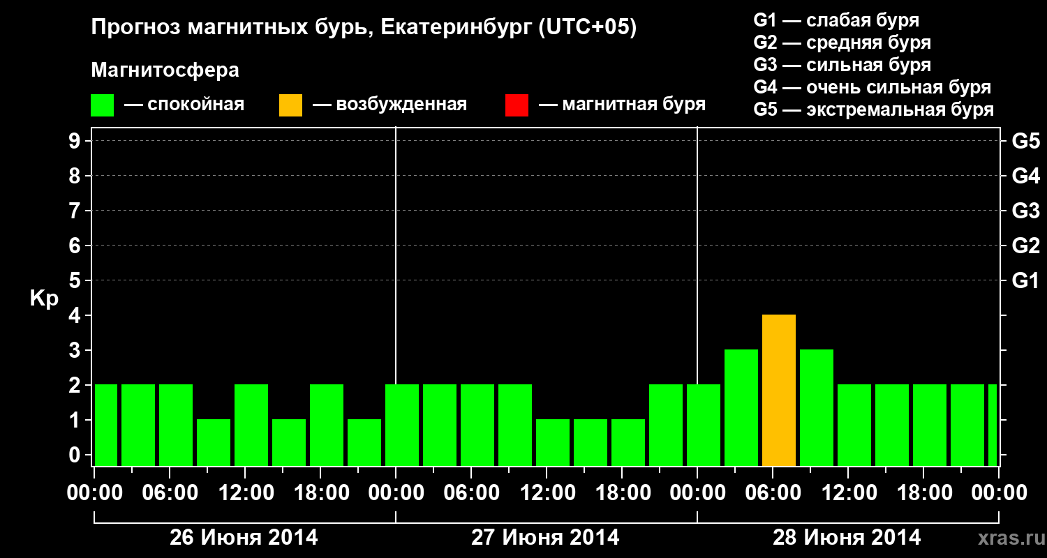 Прогноз магнитных бурь в Екатеринбурге — 26 июня 2014 года
