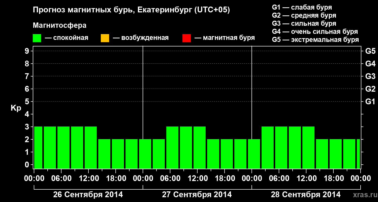Прогноз магнитных бурь в Екатеринбурге на 26 сентября 2014 года