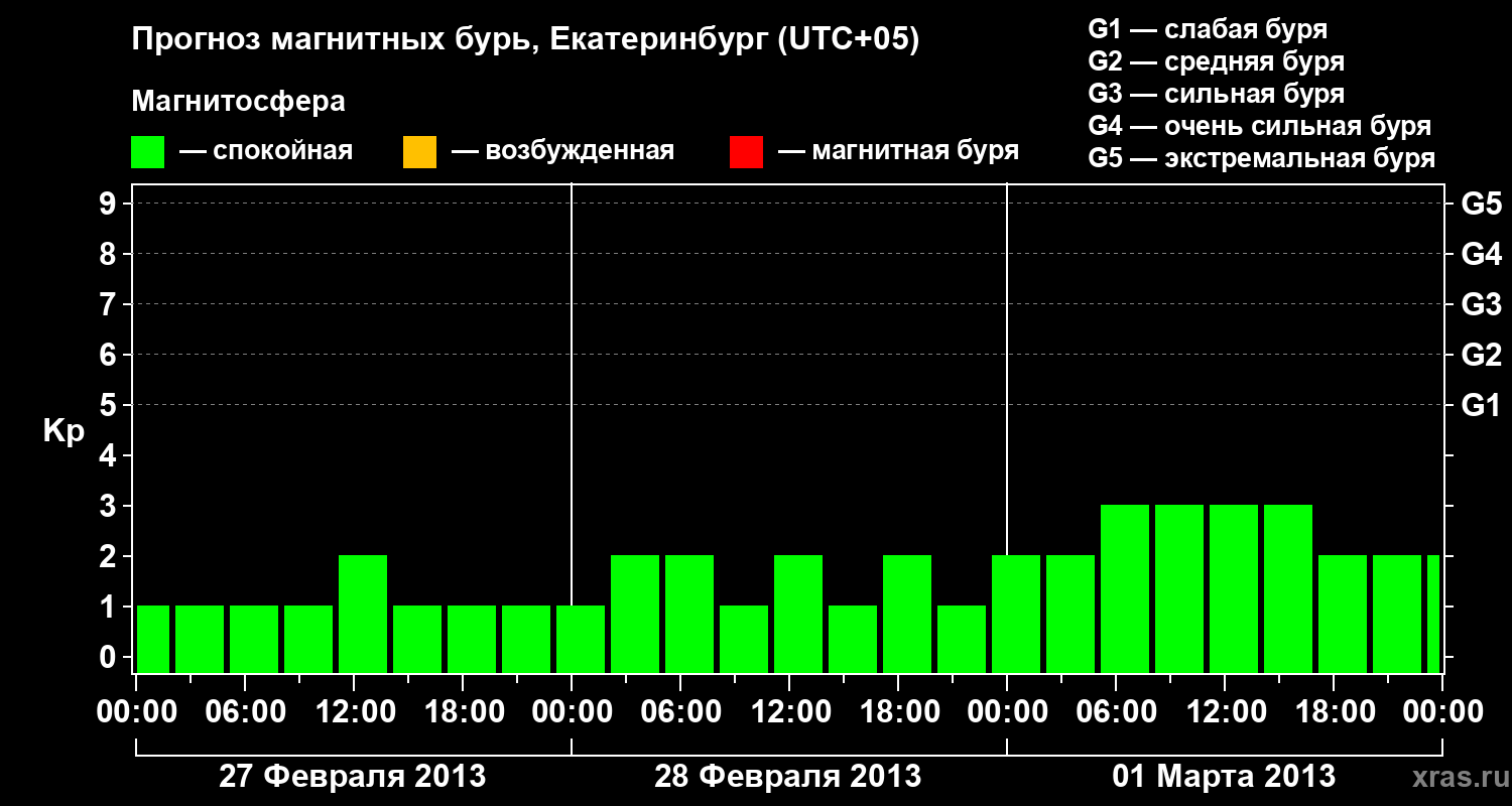Прогноз магнитных бурь в Екатеринбурге — 27 февраля 2013 года