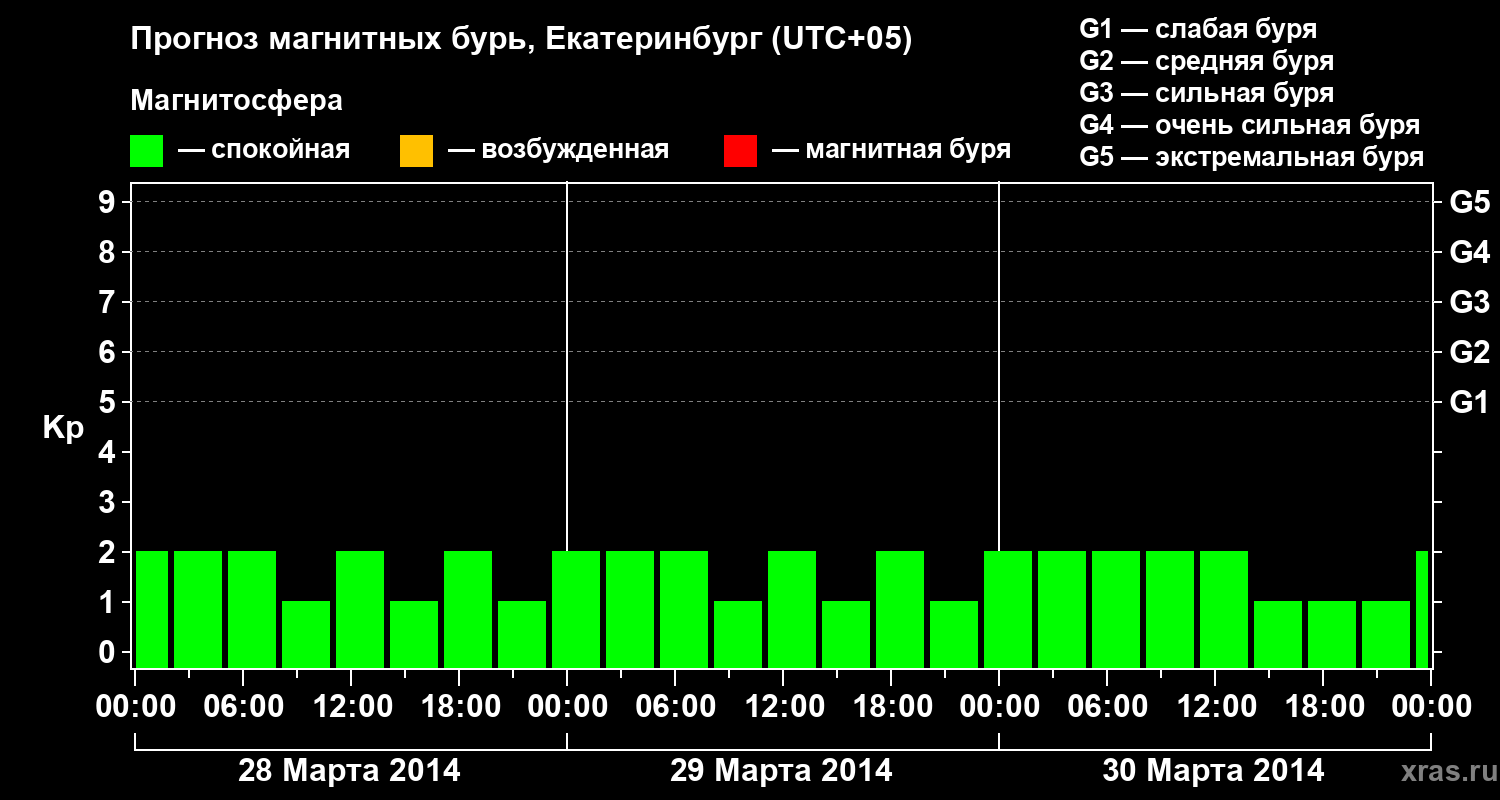 Прогноз магнитных бурь в Екатеринбурге на 28 марта 2014 года