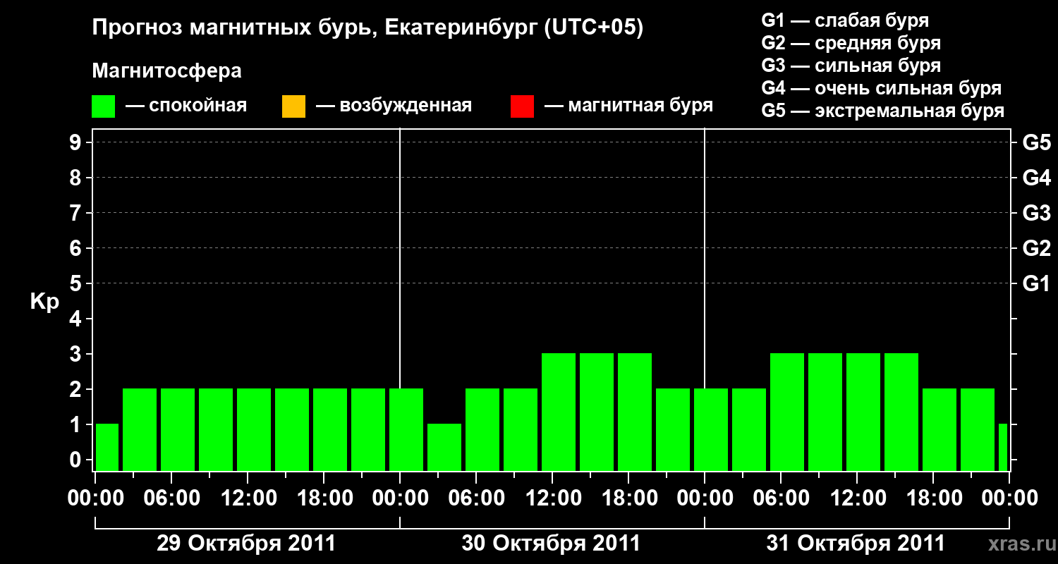 Прогноз магнитных бурь в Екатеринбурге — 29 октября 2011 года