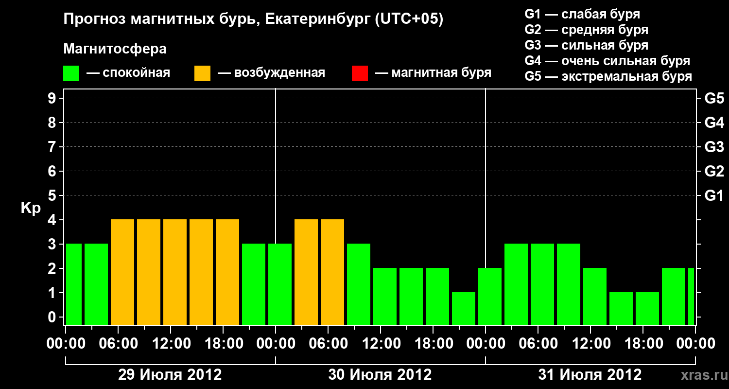 Прогноз магнитных бурь в Екатеринбурге — 29 июля 2012 года