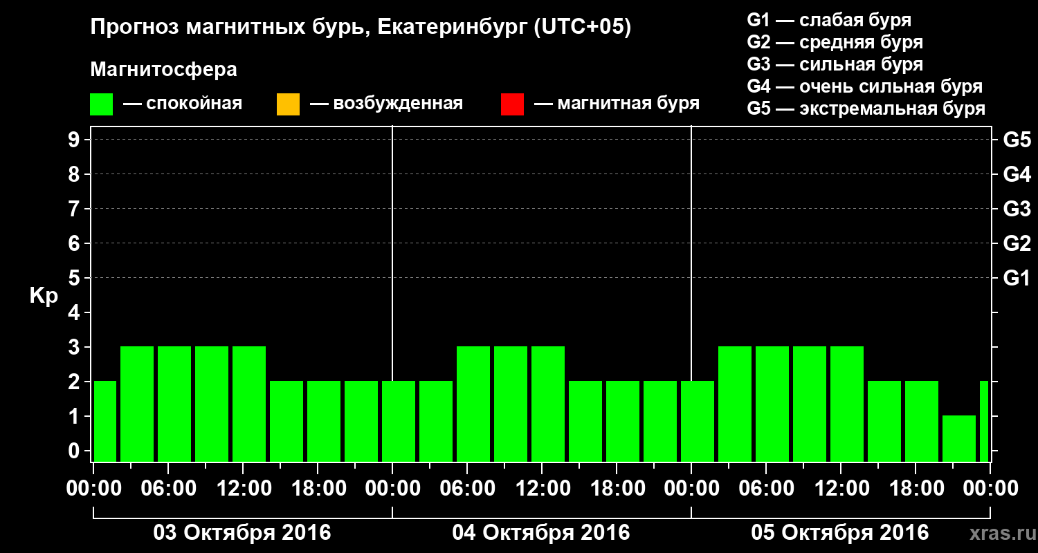 Прогноз магнитных бурь в Екатеринбурге — 3 октября 2016 года