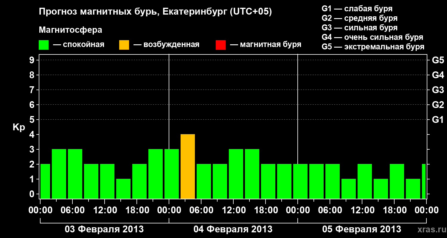 Прогноз магнитных бурь в Екатеринбурге на 3 февраля 2013 года