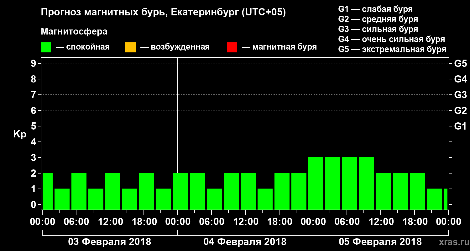 Прогноз магнитных бурь в Екатеринбурге на 3 февраля 2018 года