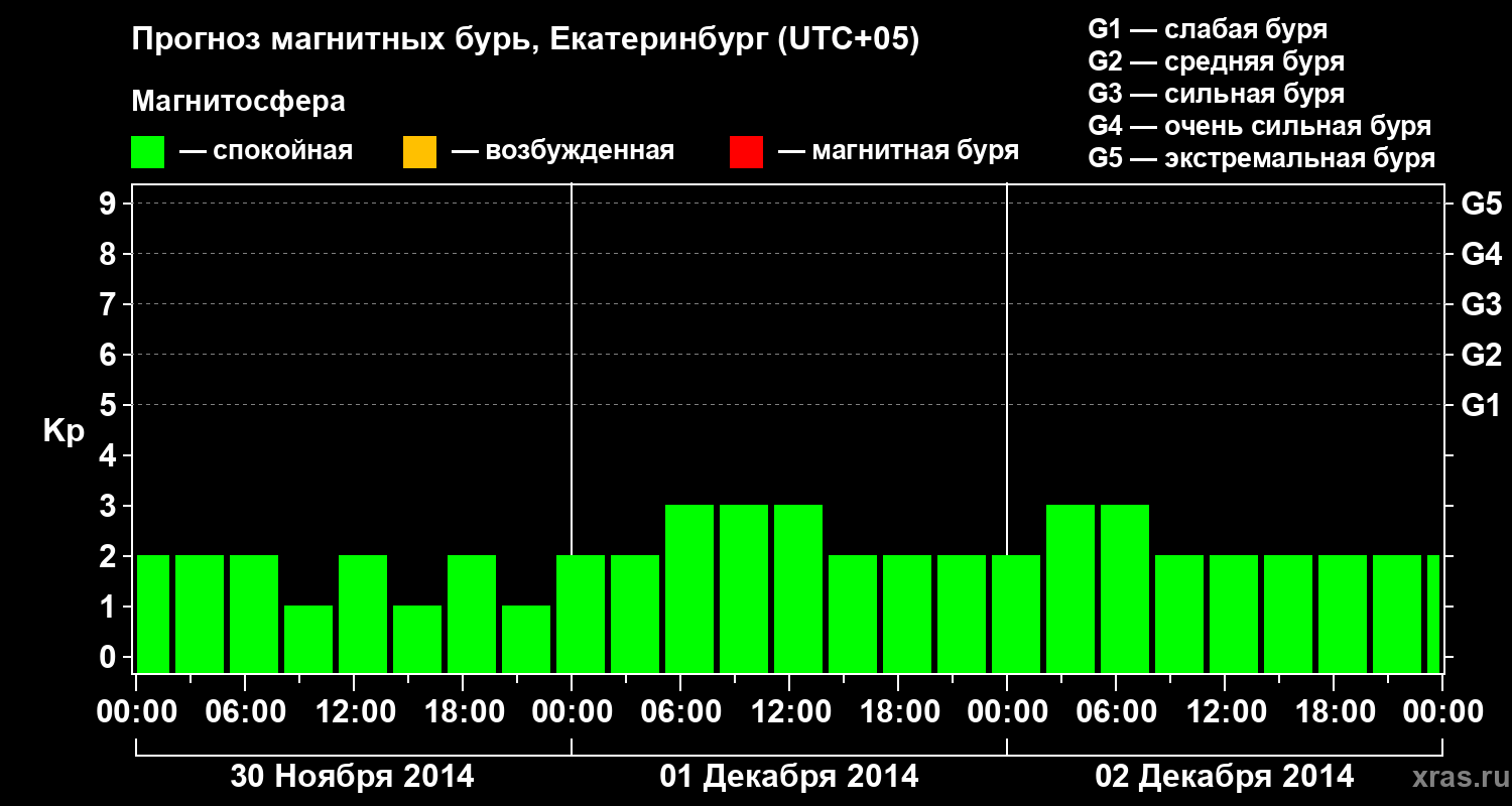 Прогноз магнитных бурь в Екатеринбурге — 30 ноября 2014 года