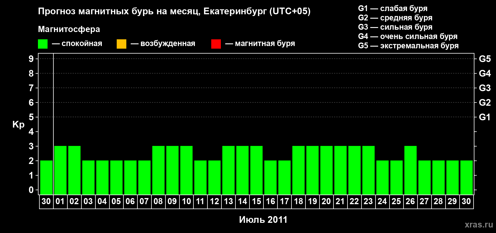 Прогноз магнитных бурь в Екатеринбурге — 30 июня 2011 года