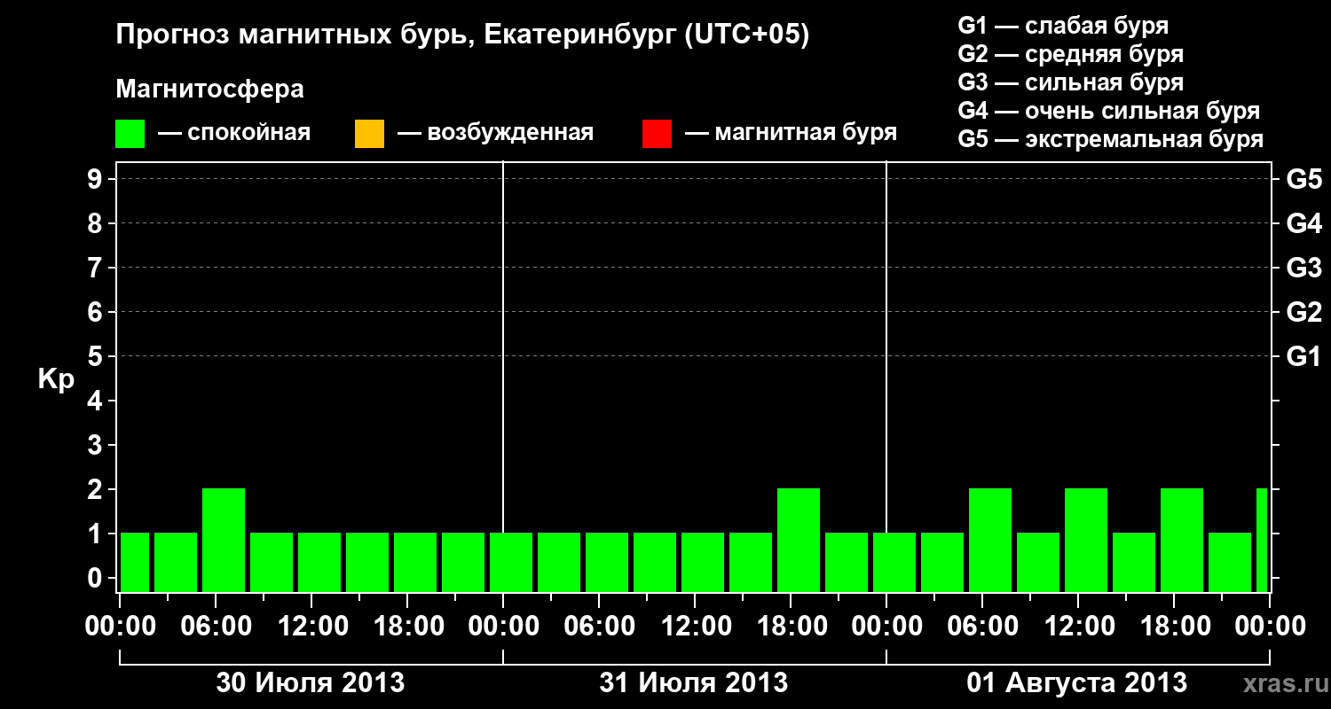 Прогноз магнитных бурь в Екатеринбурге — 30 июля 2013 года