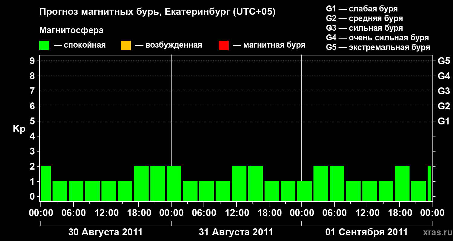 Прогноз магнитных бурь в Екатеринбурге на 30 августа 2011 года