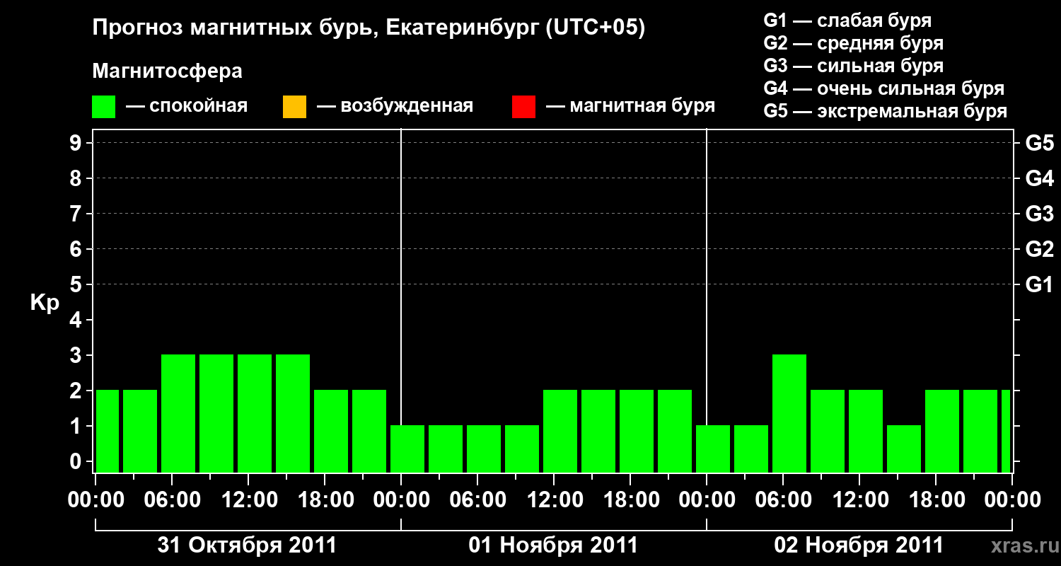 Прогноз магнитных бурь в Екатеринбурге — 31 октября 2011 года