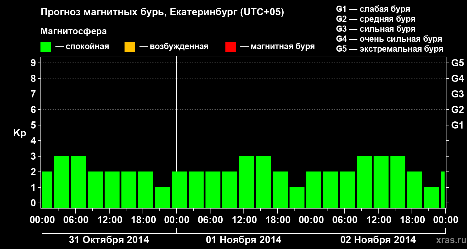 Прогноз магнитных бурь в Екатеринбурге — 31 октября 2014 года