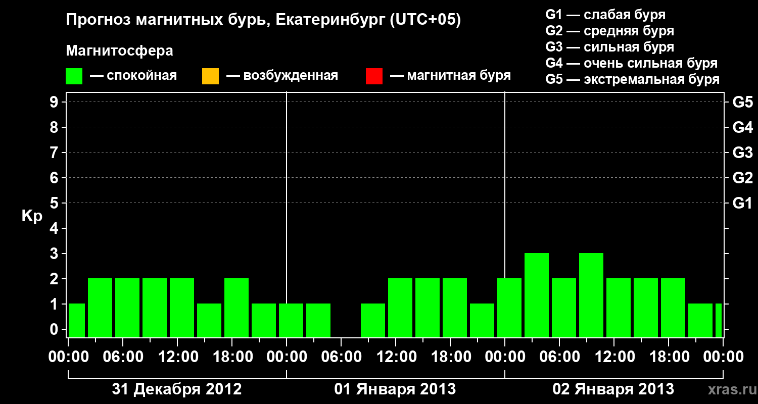 Прогноз магнитных бурь в Екатеринбурге на 31 декабря 2012 года