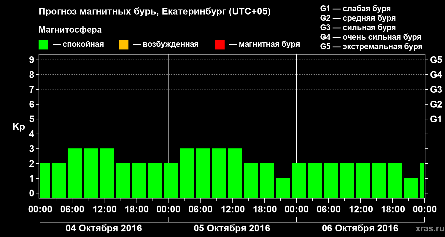 Прогноз магнитных бурь в Екатеринбурге — 4 октября 2016 года