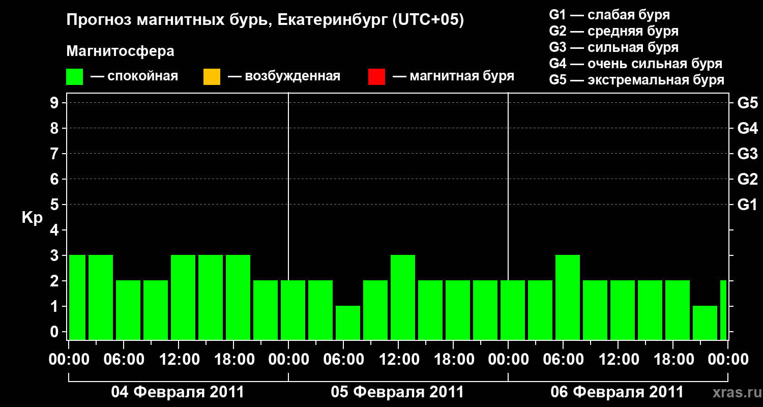 Прогноз магнитных бурь в Екатеринбурге на 4 февраля 2011 года
