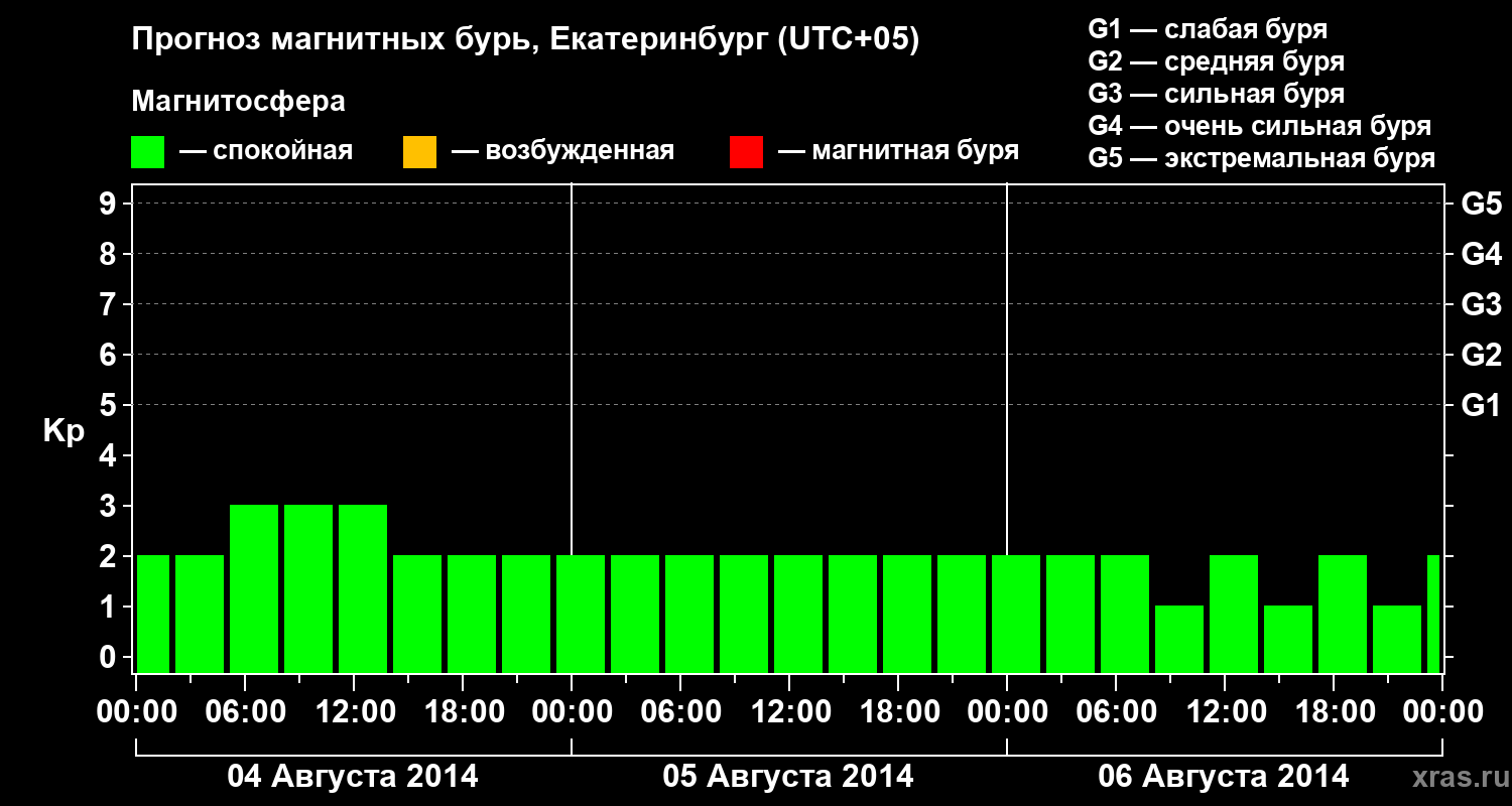 Прогноз магнитных бурь в Екатеринбурге — 4 августа 2014 года