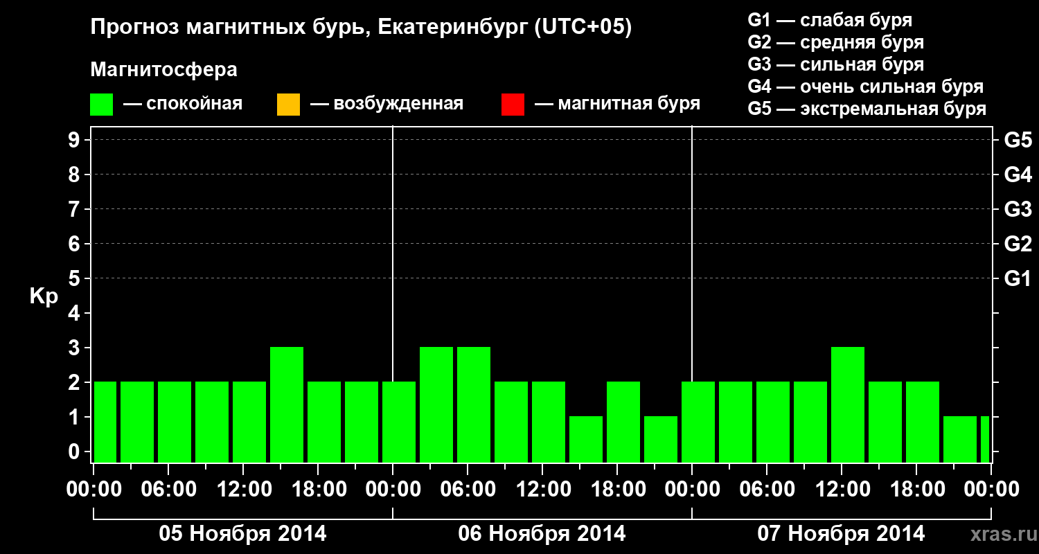 Прогноз магнитных бурь в Екатеринбурге на 5 ноября 2014 года