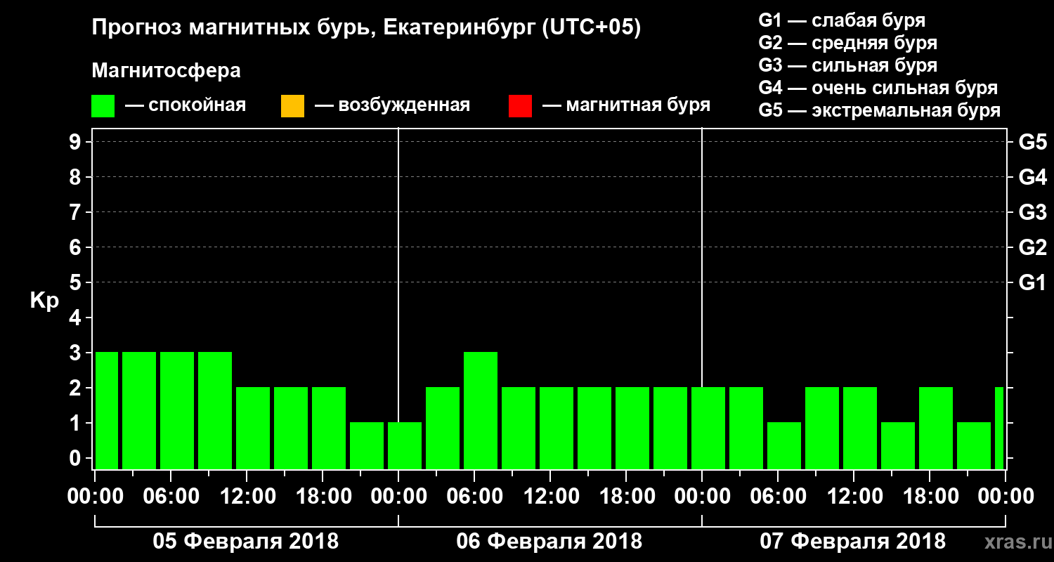 Прогноз магнитных бурь в Екатеринбурге на 5 февраля 2018 года