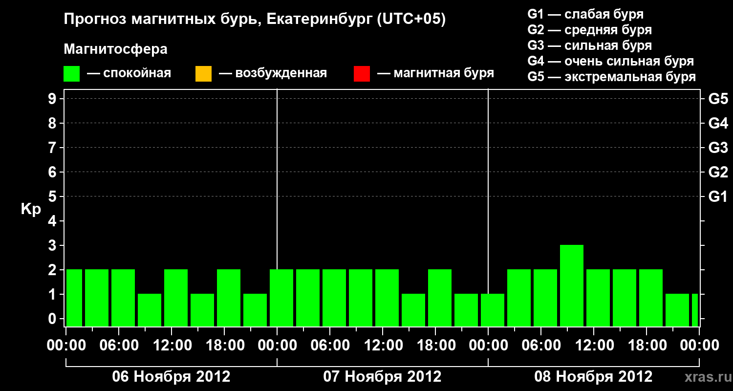 Прогноз магнитных бурь в Екатеринбурге — 6 ноября 2012 года