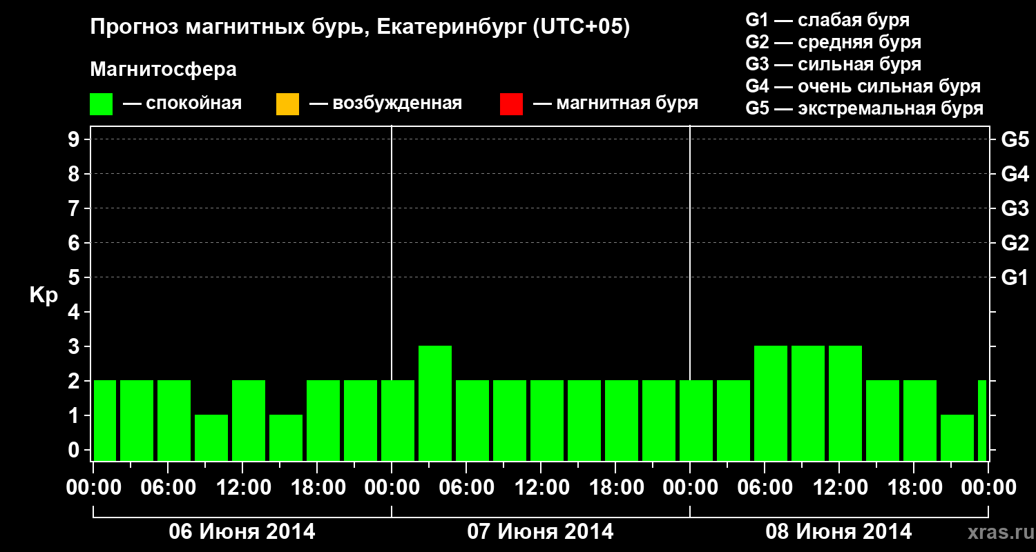 Прогноз магнитных бурь в Екатеринбурге — 6 июня 2014 года