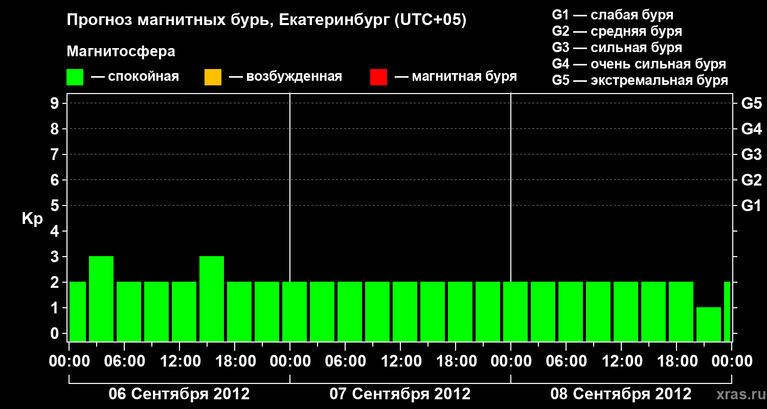 Прогноз магнитных бурь в Екатеринбурге на 6 сентября 2012 года