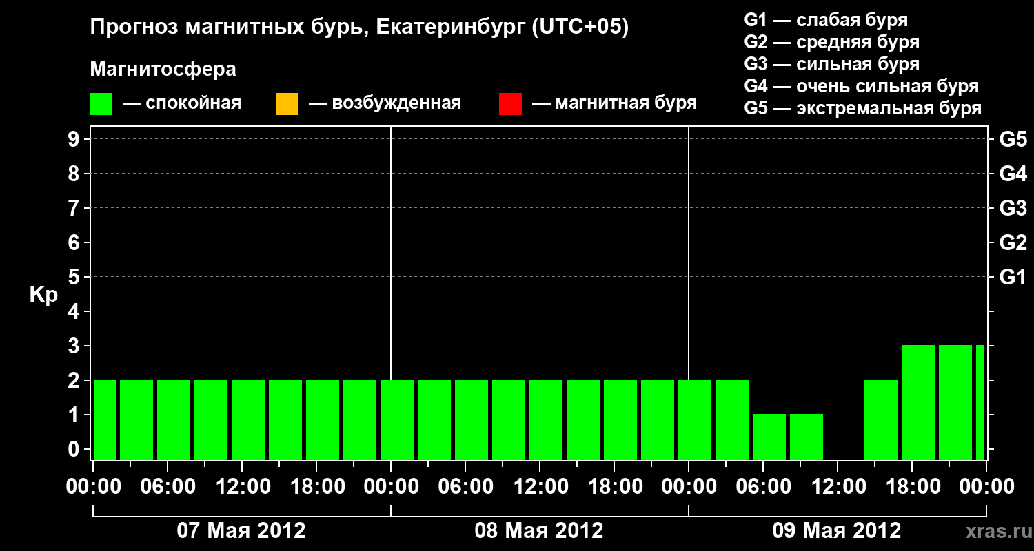 Прогноз магнитных бурь в Екатеринбурге — 7 мая 2012 года