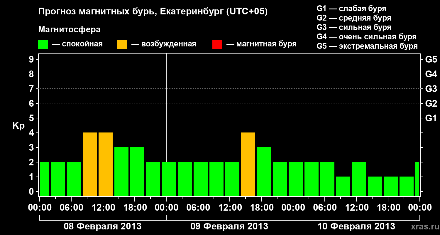 Прогноз магнитных бурь в Екатеринбурге на 8 февраля 2013 года