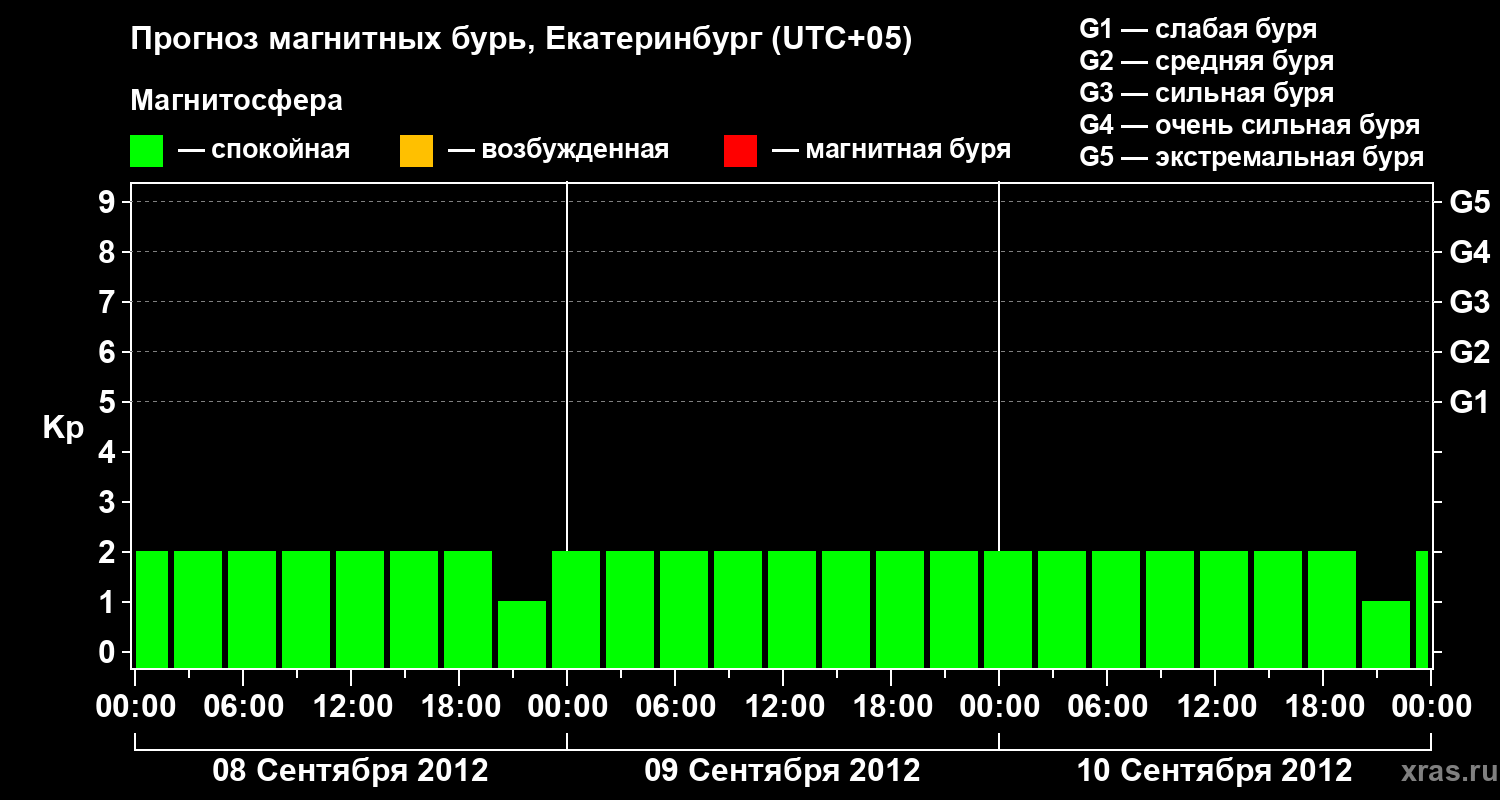 Прогноз магнитных бурь в Екатеринбурге на 8 сентября 2012 года