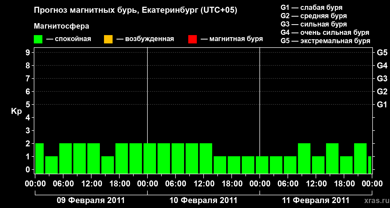 Прогноз магнитных бурь в Екатеринбурге на 9 февраля 2011 года