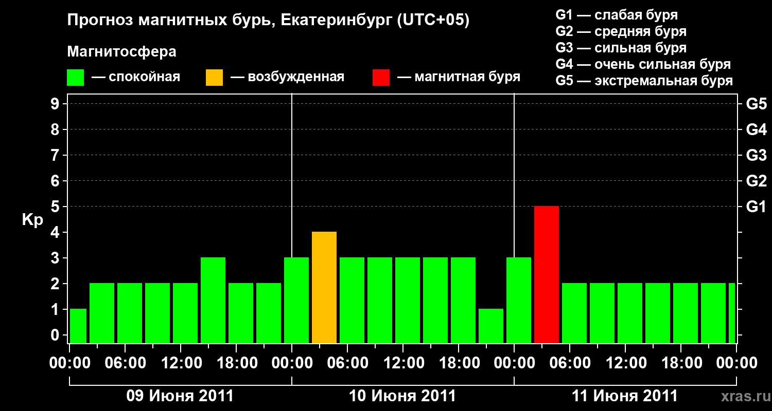 Прогноз магнитных бурь в Екатеринбурге — 9 июня 2011 года