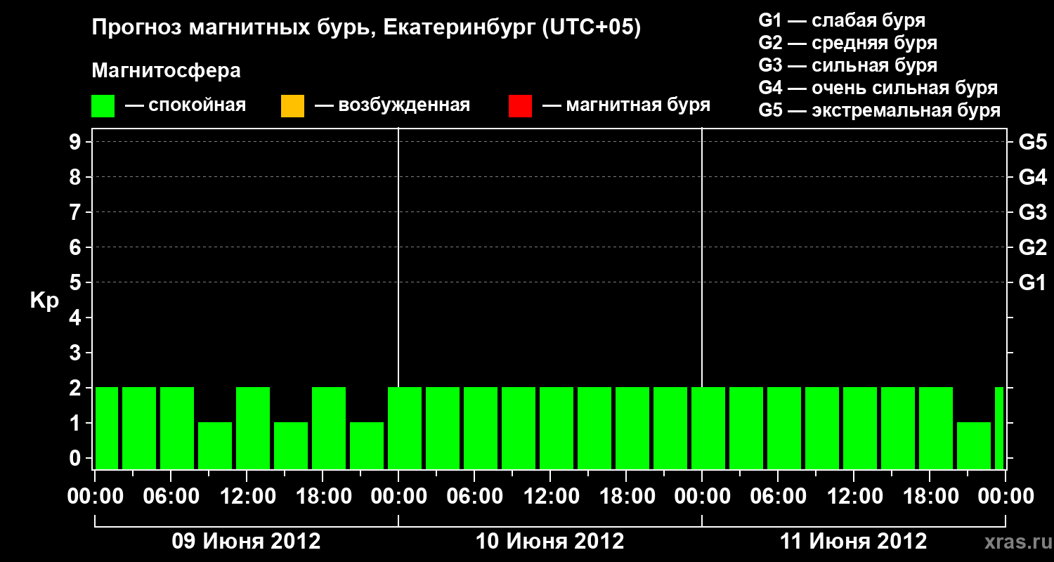 Прогноз магнитных бурь в Екатеринбурге на 9 июня 2012 года