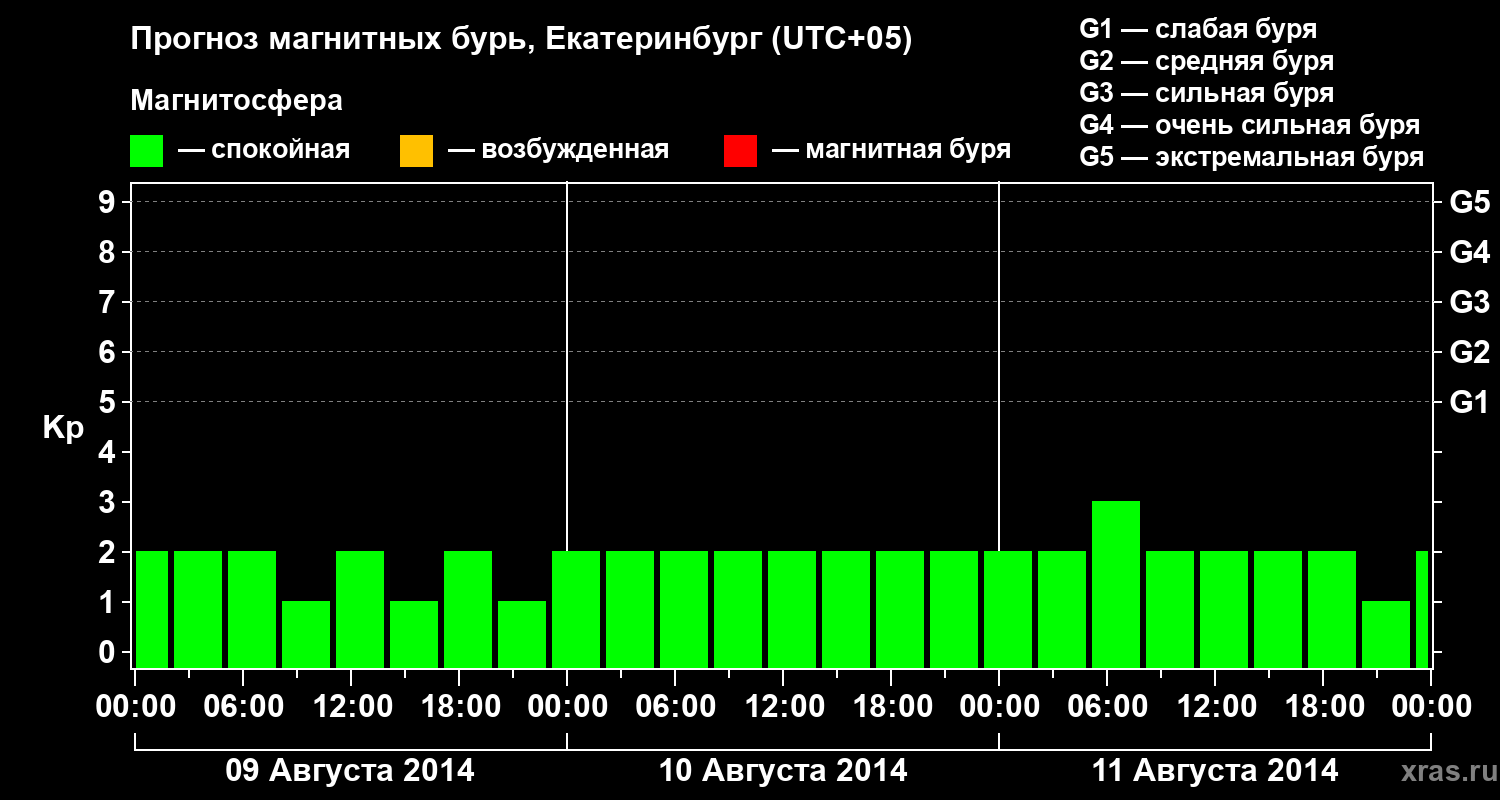 Прогноз магнитных бурь в Екатеринбурге — 9 августа 2014 года