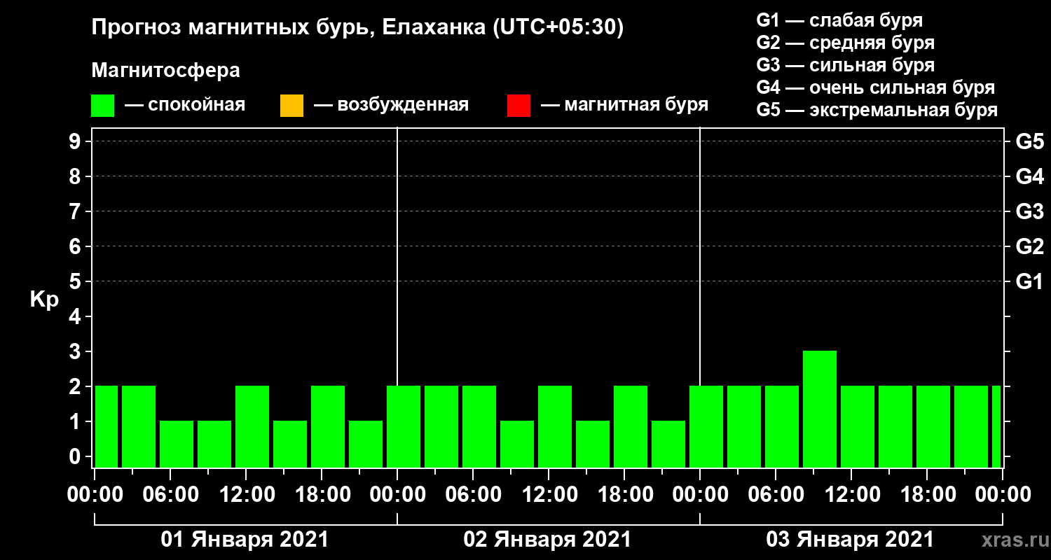 Прогноз магнитных бурь в Елаханке — 1 января 2021 года