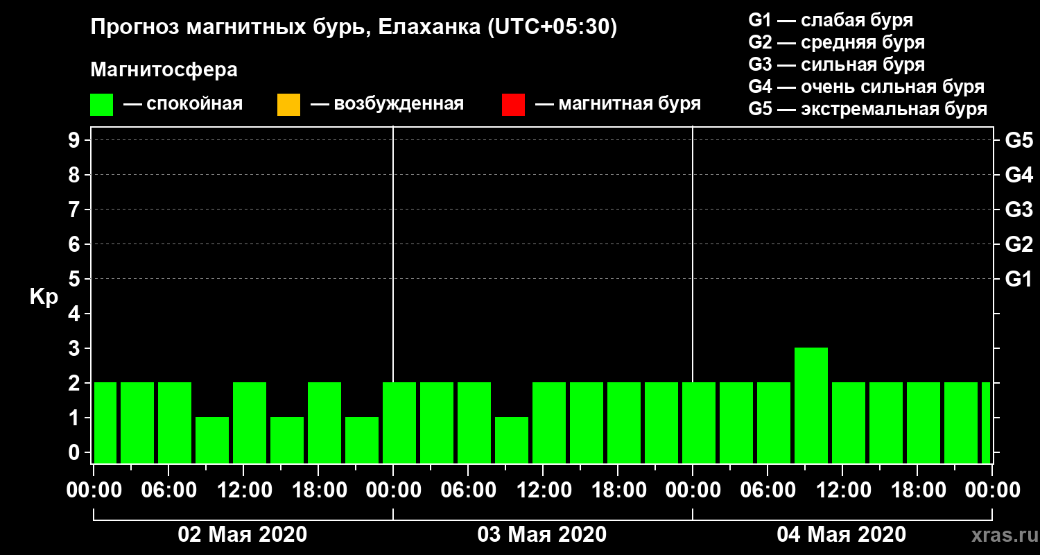 Прогноз магнитных бурь в Елаханке на 2 мая 2020 года
