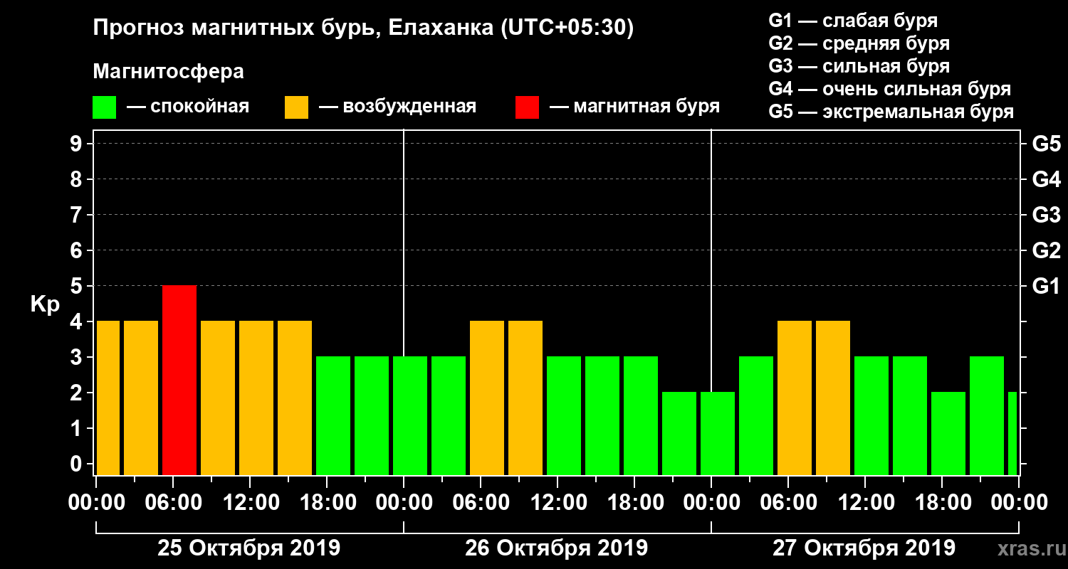 Прогноз магнитных бурь в Елаханке на 25 октября 2019 года