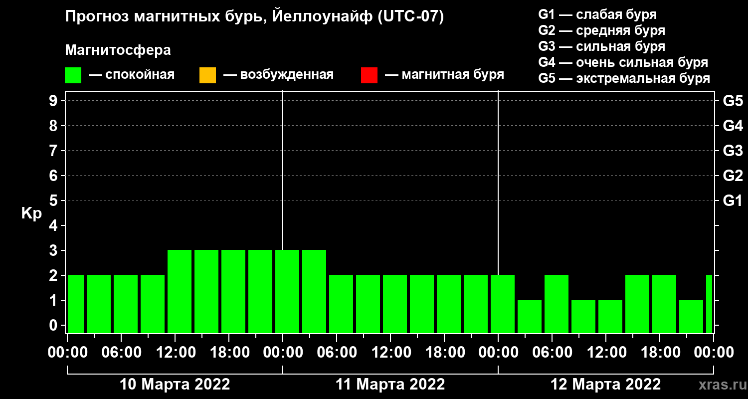 Прогноз магнитных бурь в Йеллоунайфе на 10 марта 2022 года