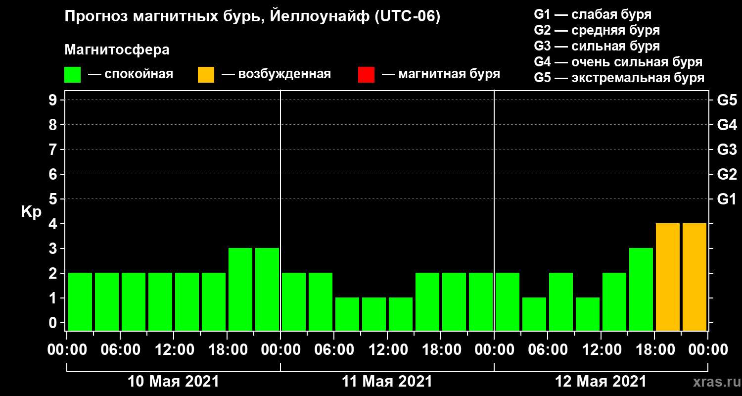 Прогноз магнитных бурь в Йеллоунайфе на 10 мая 2021 года