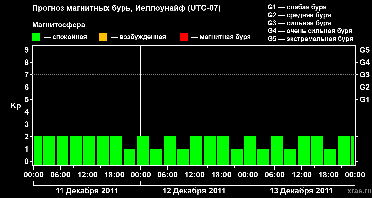 Прогноз магнитных бурь в Йеллоунайфе на 11 декабря 2011 года