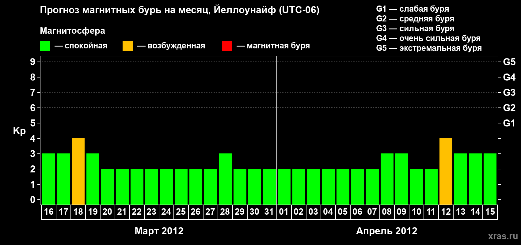 Прогноз магнитных бурь в Йеллоунайфе на 16 марта 2012 года