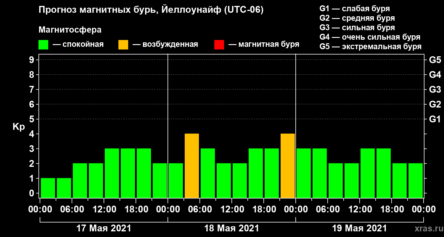 Прогноз магнитных бурь в Йеллоунайфе на 17 мая 2021 года