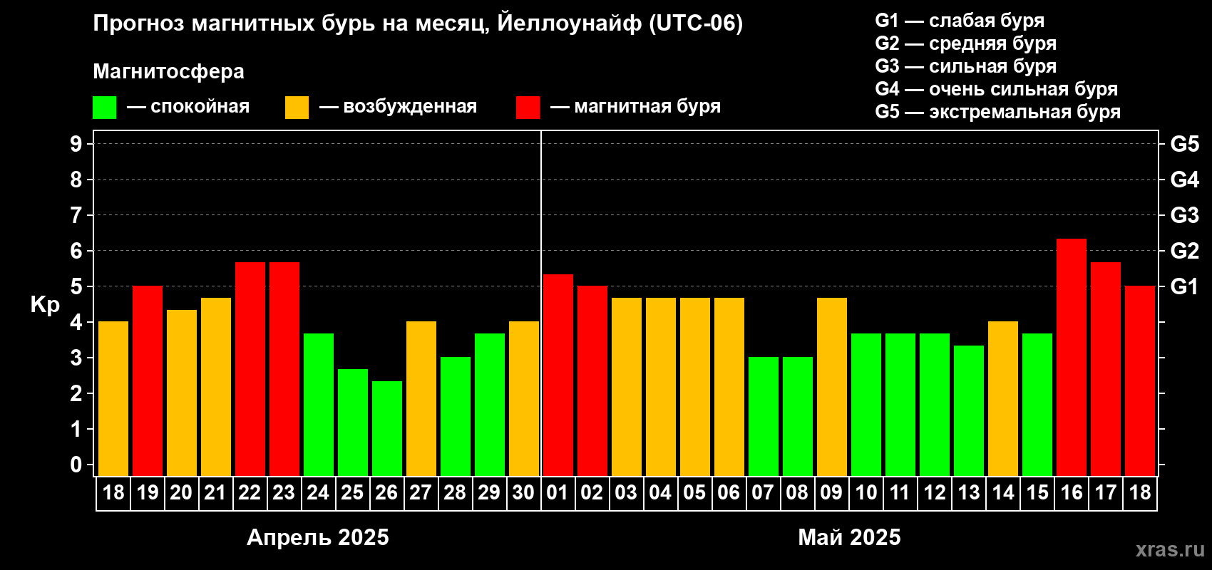 Прогноз магнитных бурь в Йеллоунайфе на 18 апреля 2025 года