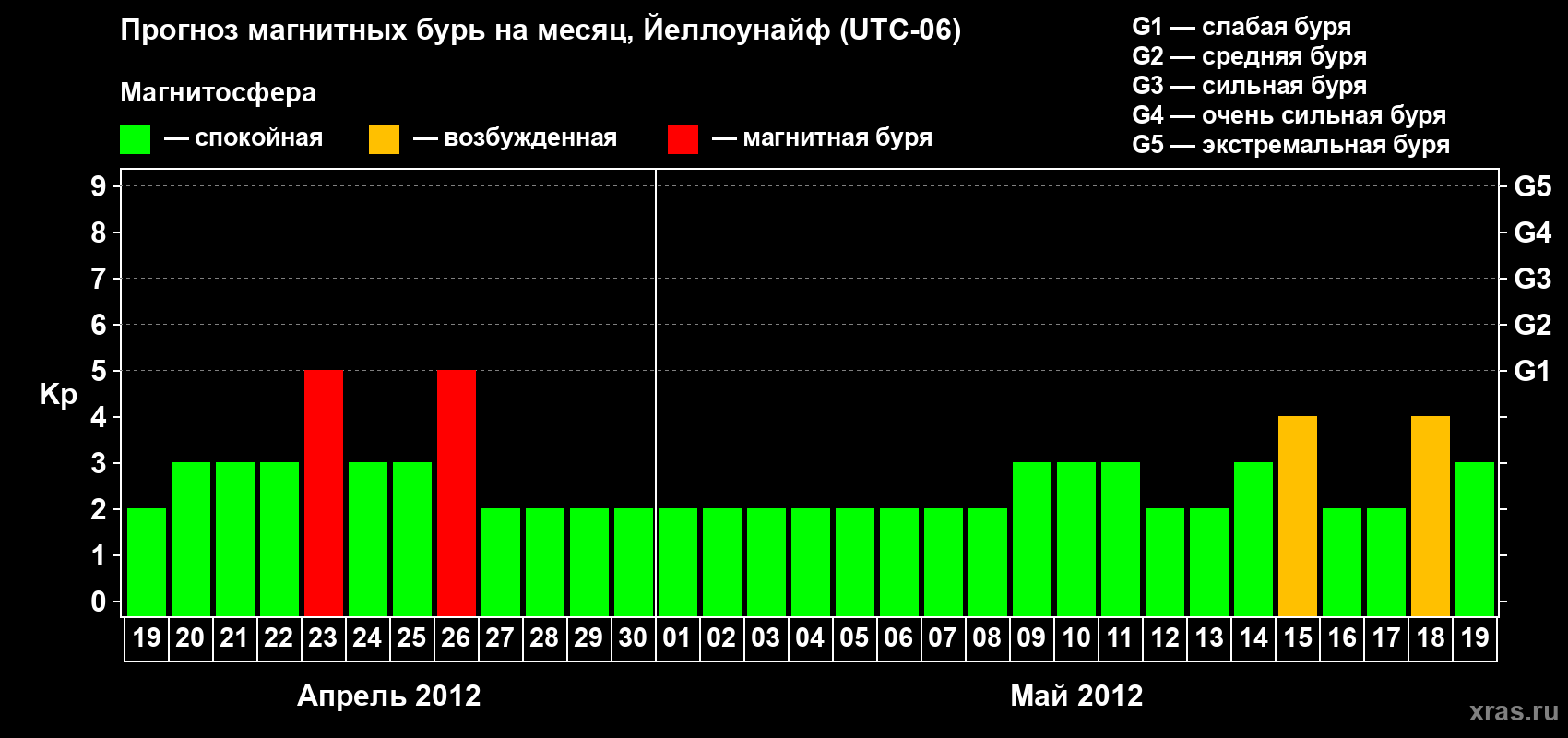 Прогноз магнитных бурь в Йеллоунайфе — 19 апреля 2012 года
