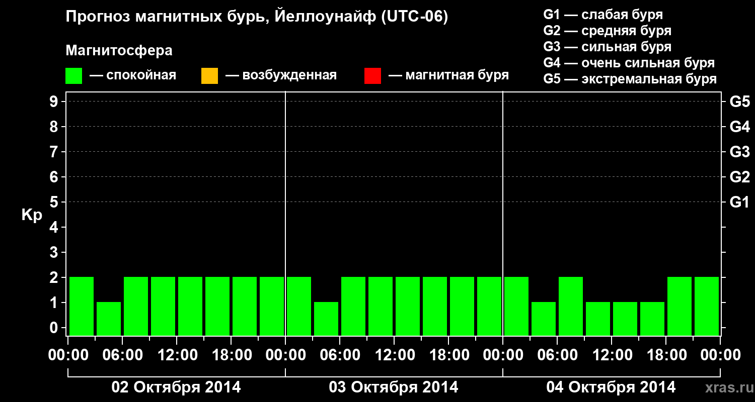 Прогноз магнитных бурь в Йеллоунайфе на 2 октября 2014 года