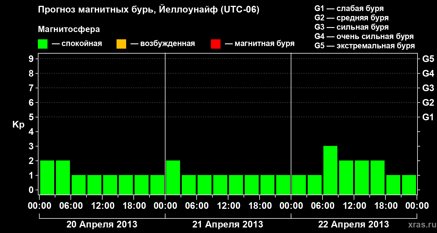Прогноз магнитных бурь в Йеллоунайфе на 20 апреля 2013 года